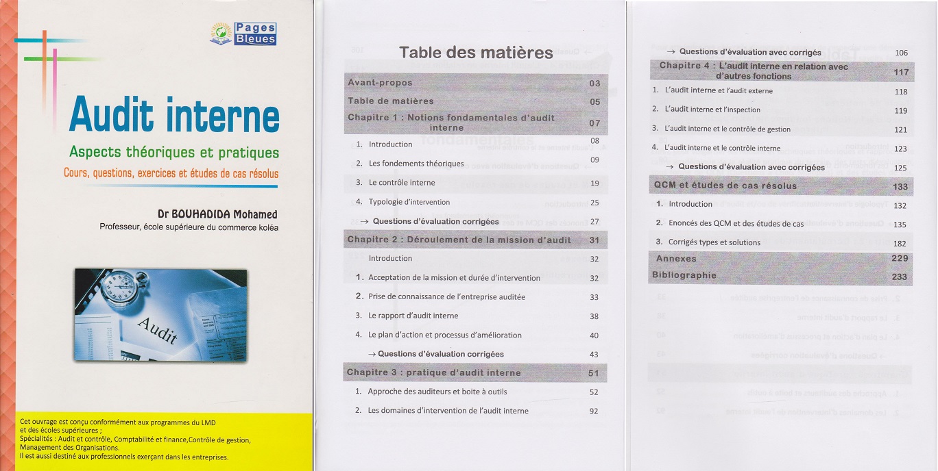 | Livreكتاب  | 15 | audit interne aspects théoriques et pratique .cours ,questions,exercices et études de cas résoulus |