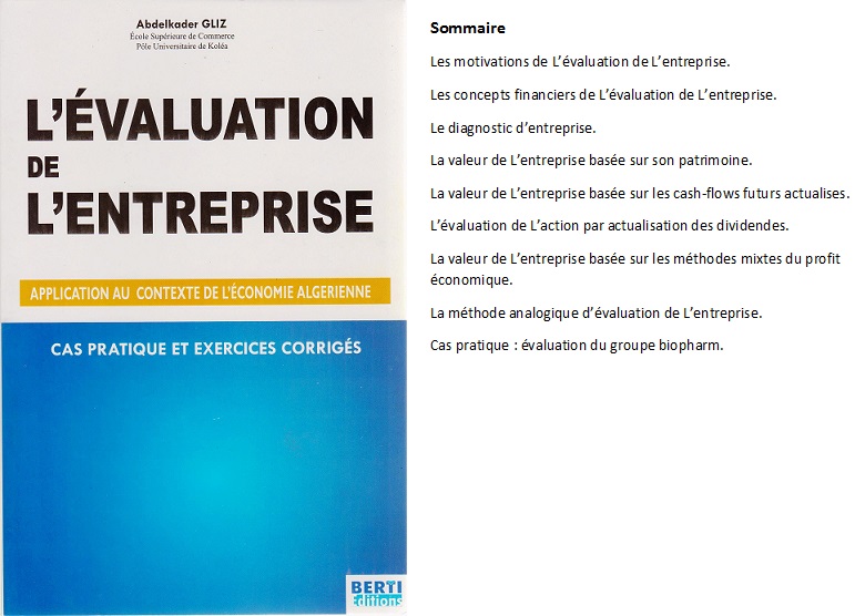 | Livreكتاب  | 17 | L'évaluation de L'entreprise application au contexte de L'économie algerienne:cas pratique et exercices corrigés |