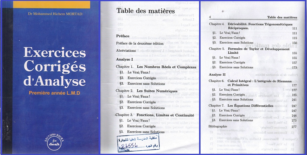 | Livreكتاب  | 1 | Exercices corrigés d'analyse avec rappels de cours(première année L.M.D) |