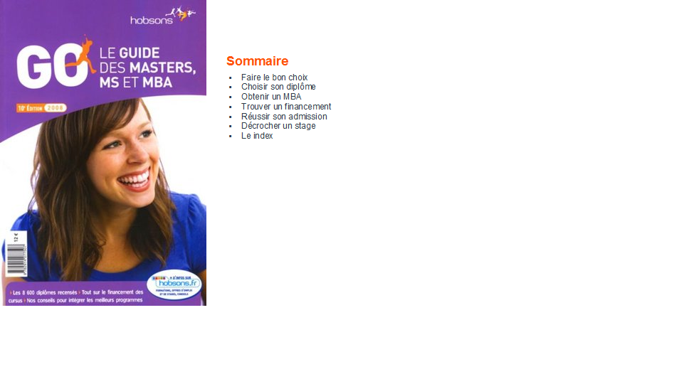 Livreكتاب![]() | GO, le guide des masters, MS et MBA |
