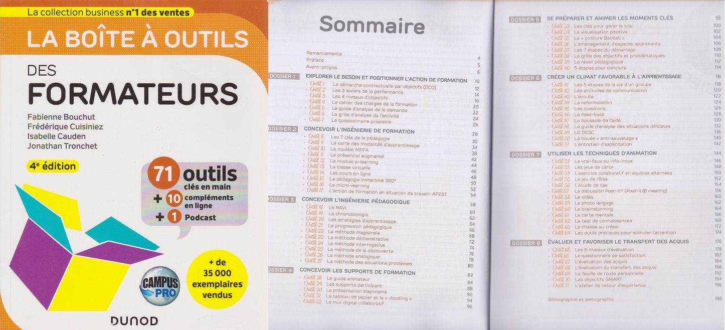 | Livreكتاب  | La boîte à outils des formateurs 71 outils clés en main + 10 compléments en ligne + 1 Podcast |