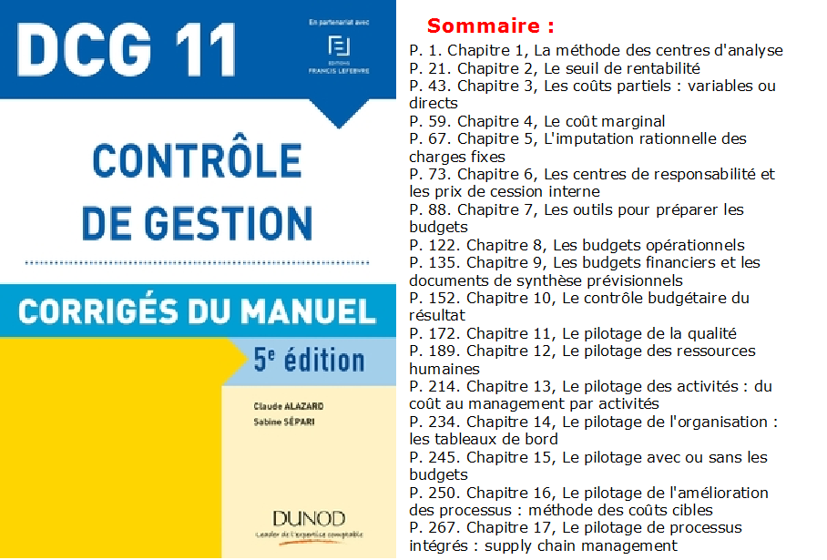 | Livreكتاب  | DCG 11 : contrôle de gestion corrigés du manuel |