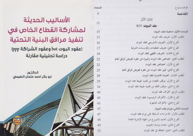 الأساليب الحديثة لمشاركة القطاع الخاص في تنفيذ مرافق البنية التحتية ( عقود البوت BOT وعقود الشراكة PPP) دراسة تحليلية مقارنة القطاع العام القطاع الخاص عقد البوت عقود الشراكة النعيمي أبوبكر أحمد عثمان