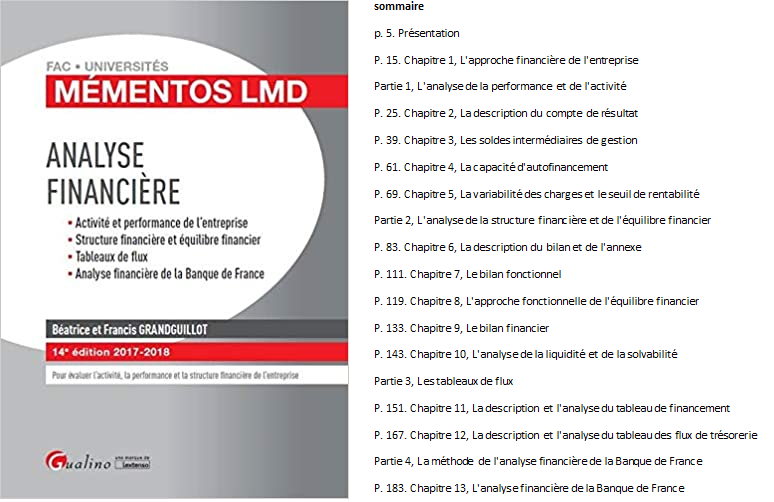 Livreكتاب![]() | 62 | Analyse financière activité et performance de l'entreprise, structure financière et équilibre financier, tableaux de flux, analyse financière de la Banque de France |